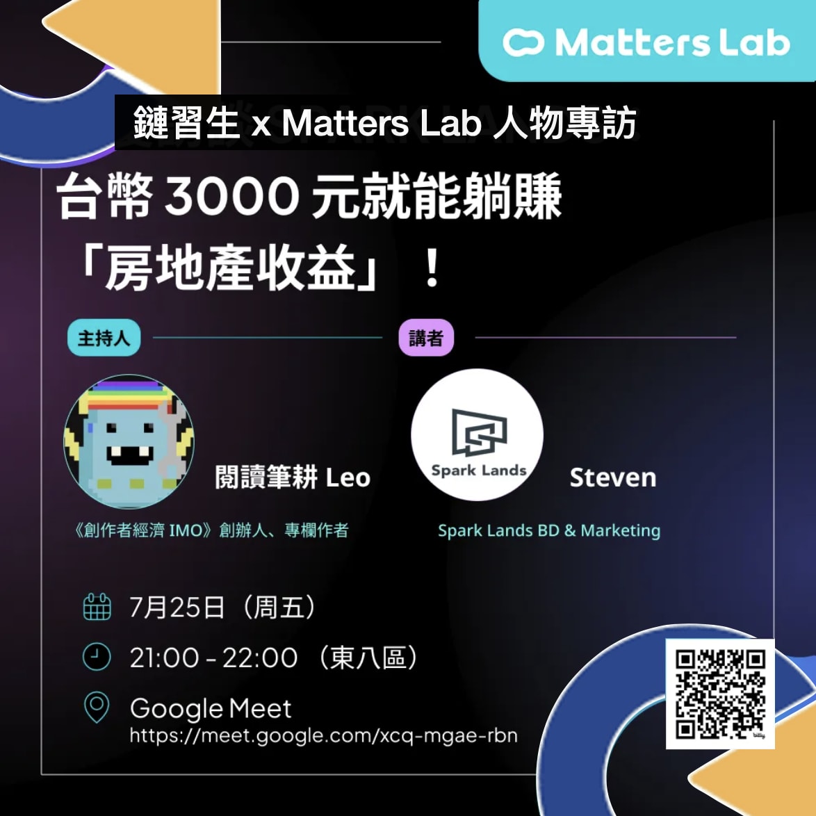 大家好,我是 Spark Lands 的 Steven,平常負責對外合作和行銷相關的事。