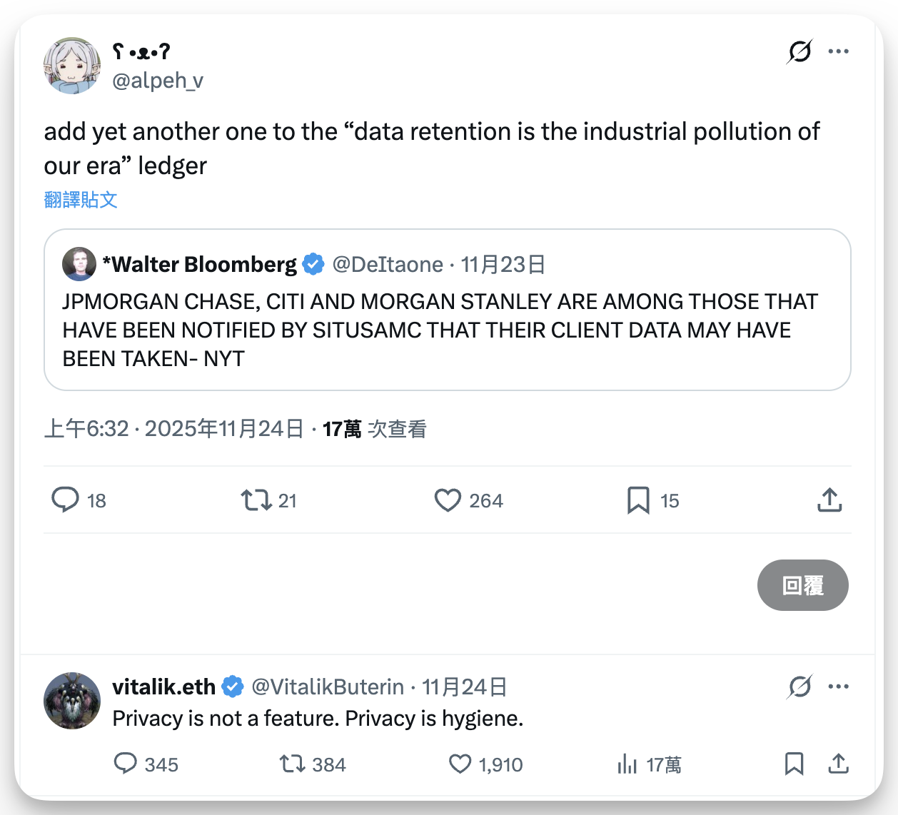 或許從這次銀行資料洩露事件和維塔利克的評論中我們能得到的最大啟示是:隱私洩露很少來自用戶所恐懼的技術,而是來自用戶所信任的系統。