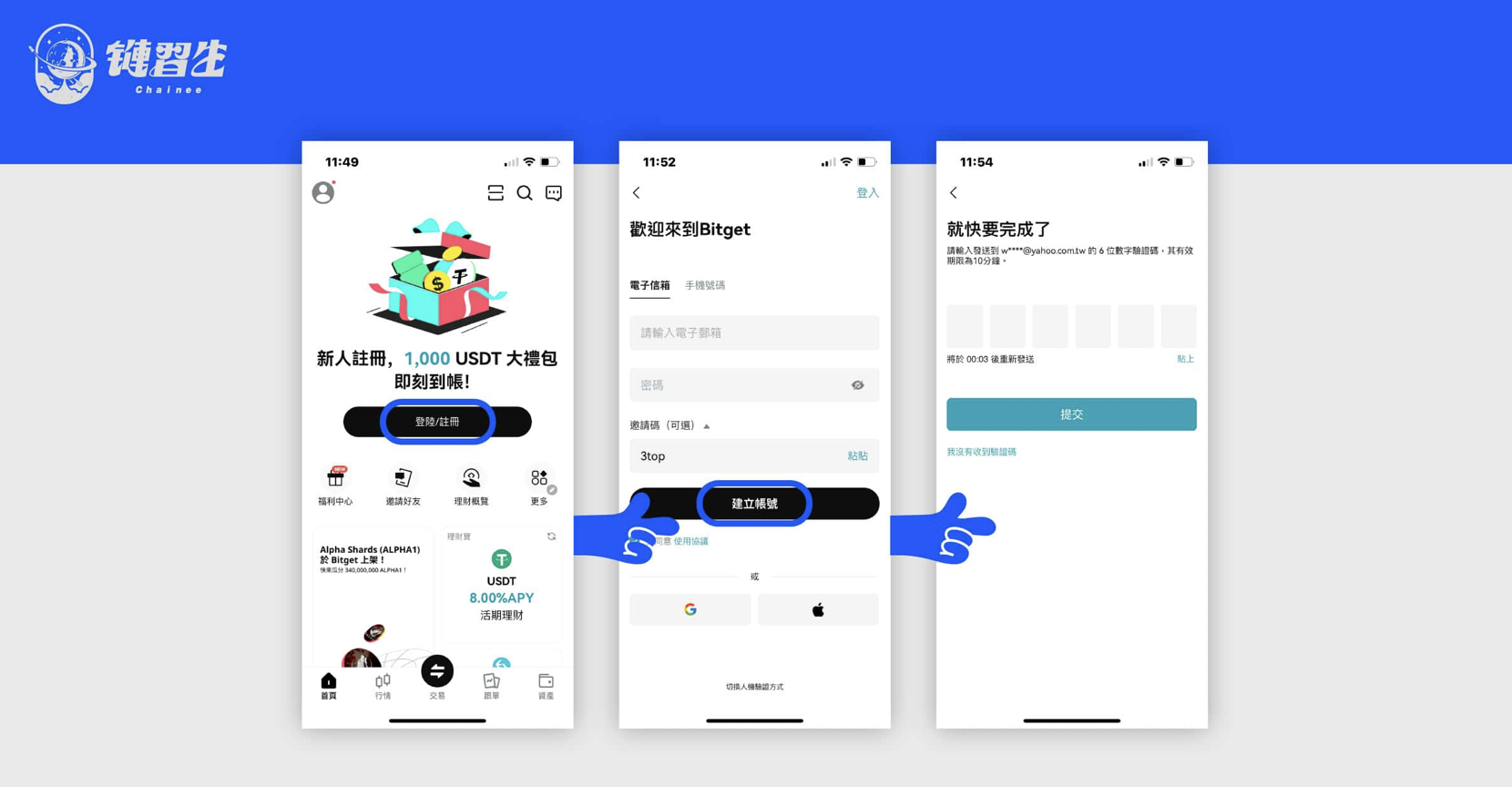- 回填 Bitget + 電子郵件信箱 → 完成