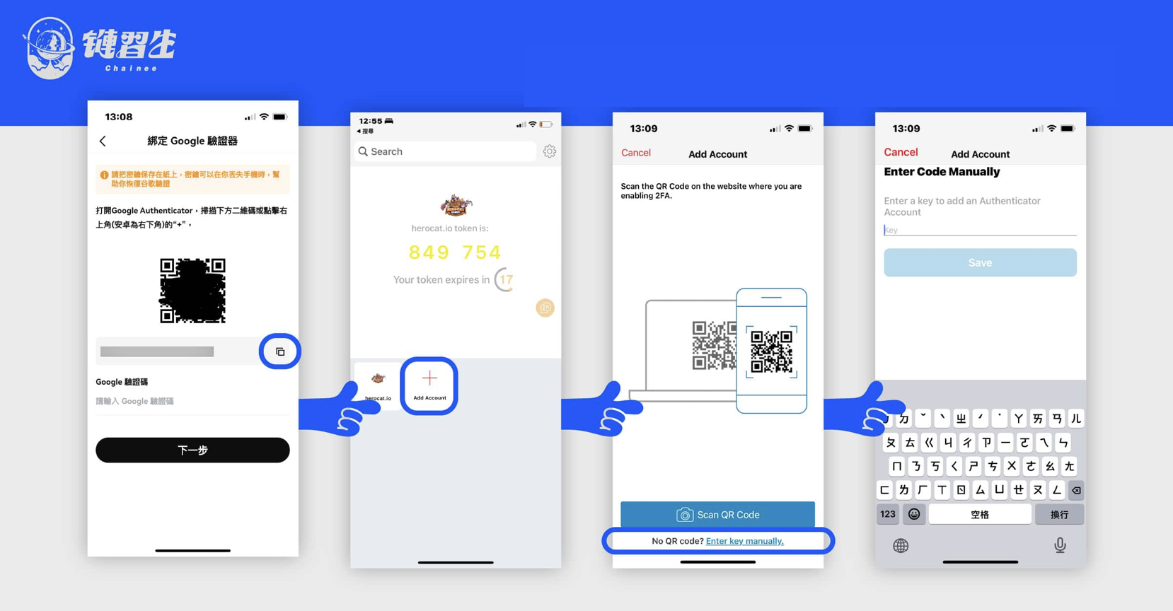 - 把派網提供的金鑰(Key) 新增貼到 Google Authenticator 裡