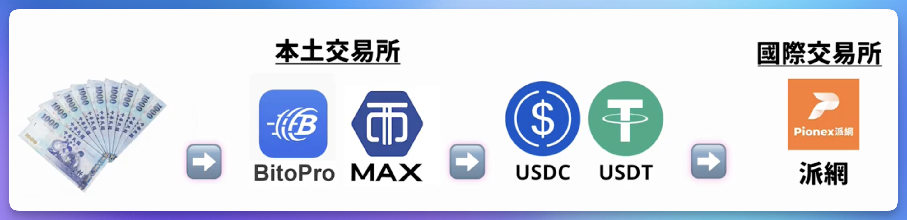 路徑:先在本土交易所(例如 BitoPro、HOYA BIT、MAX)用台幣買 USDT → 再轉到派網。
