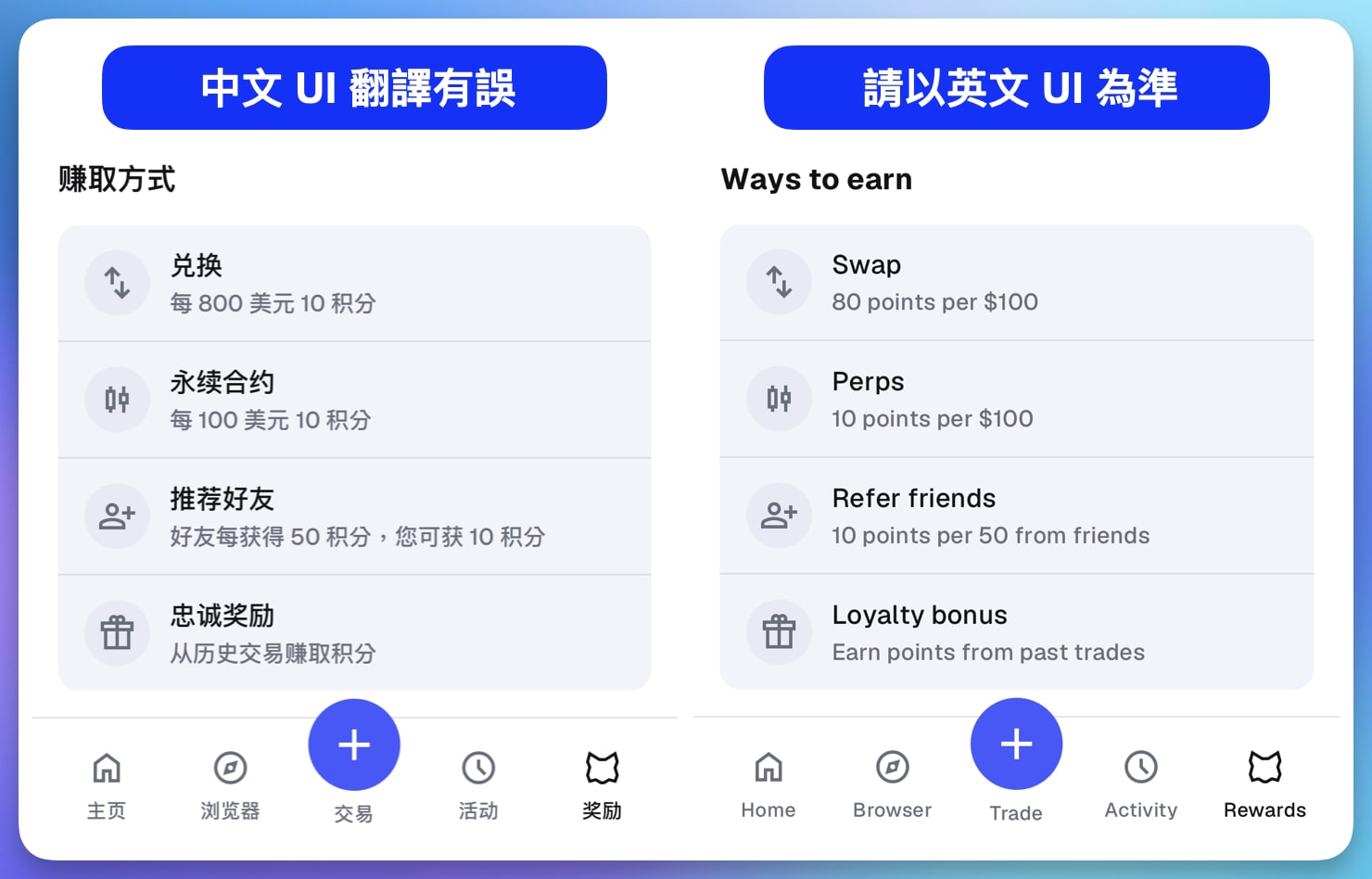 意思是每 100U 交易量可獲得 200 分(80 分原生 + 40 分 + 80 分)。