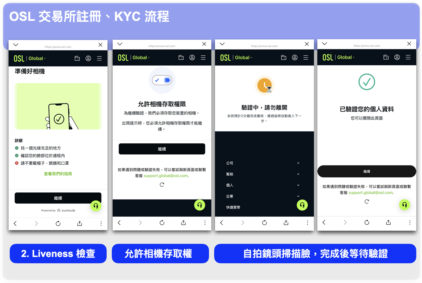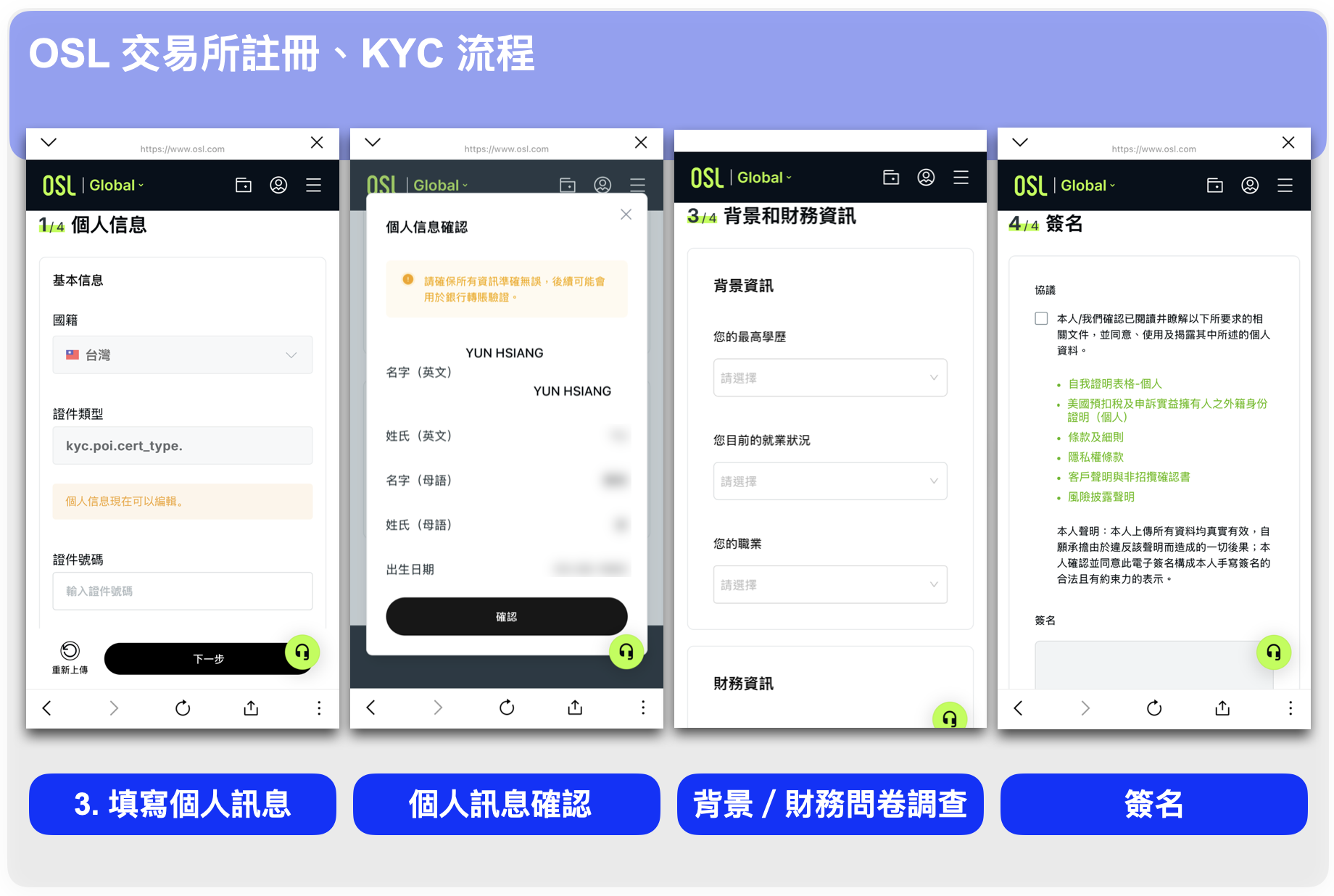 使用鏈習生專屬連結註冊 OSL,註冊完以後進入身份驗證,分為以下 3 個環節: