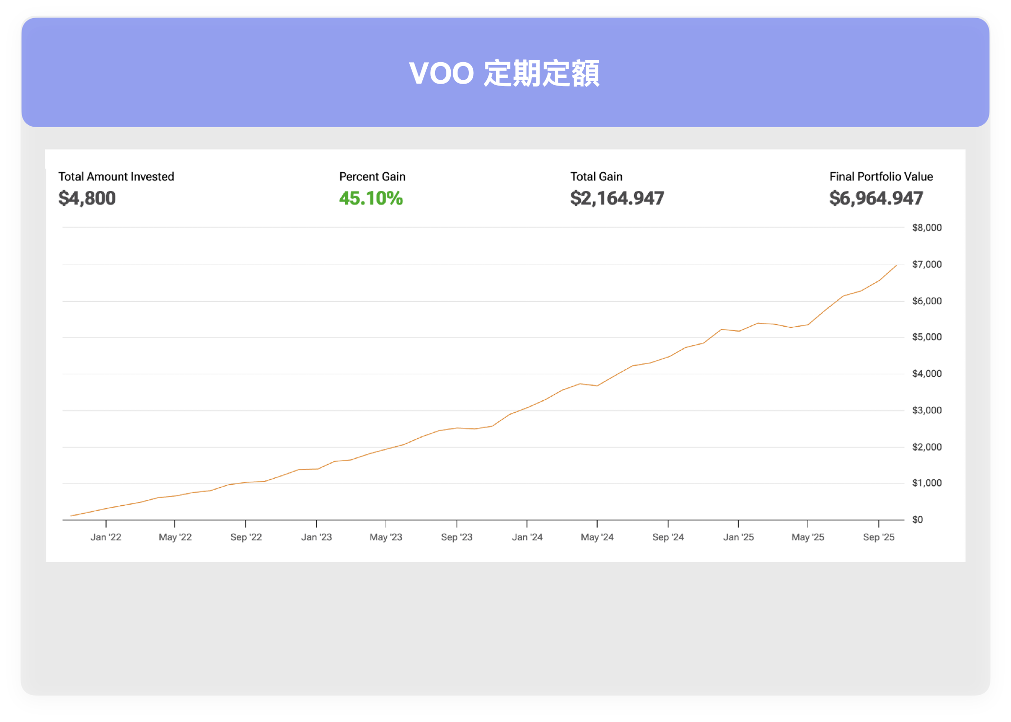 很多投資人因為「怕買貴」、「怕套牢」等心理,就會遲遲不敢投入。定期定額能強制你按計畫行動,不被短期波動干擾,也不會因為錯過時機而一直觀望。